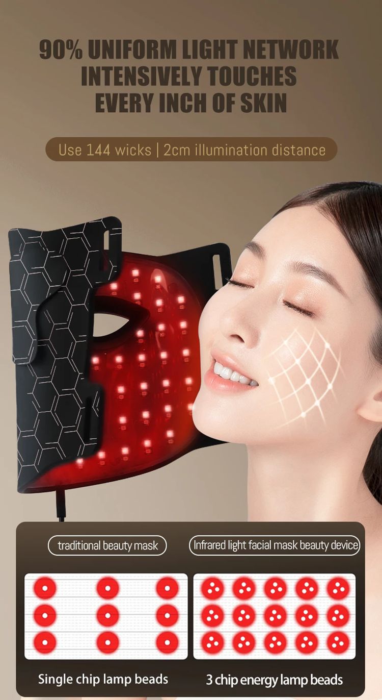 Hovedfunktionen afLED LYS FACIAL MASK Bærbar rødt lysbehandlinger at levere målet rødt lys (normalt 630-660nm) på huden for at opnå hudplejefeffekter. Denne lys i medicinsk kvalitet trænger ind i dermis og stimulerer produktionen af kollagen og elastin. Det kan også fremme blodcirkulation og lette levering af næringsstoffer til hudceller og derved lysende kedelige hudfarver og afbalancere dem. Derudover hjælper det med at berolige betændelse, hjælper med beroligende acne eller følsom hud og understøtter hudreparation. I modsætning til barske behandlingsmetoder er det blid, ikke-invasiv og sikker til daglig brug, hvilket gør det til det øverste valg for familier til effektiv hudforyngelse.