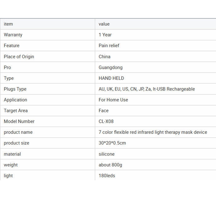 Rød LED -lysbehandling ansigtsmaske'Beskrivelse